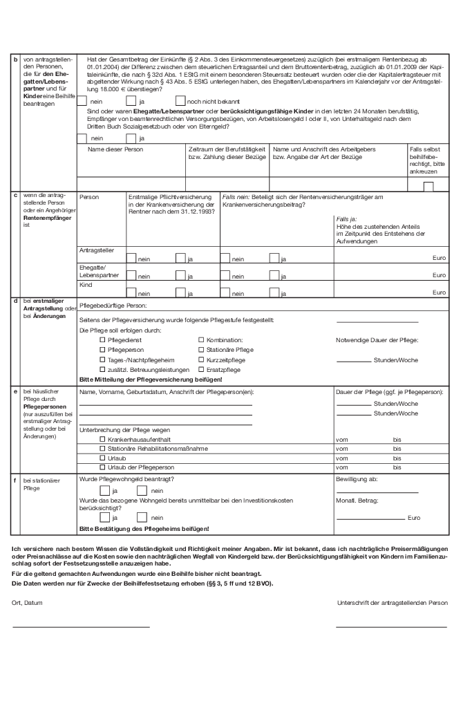 Gilt nur, falls eine Beihilfe bei Pflegebedürftigkeit Ihres Ehegatten/Ihrer Ehegattin gewährt wurde: